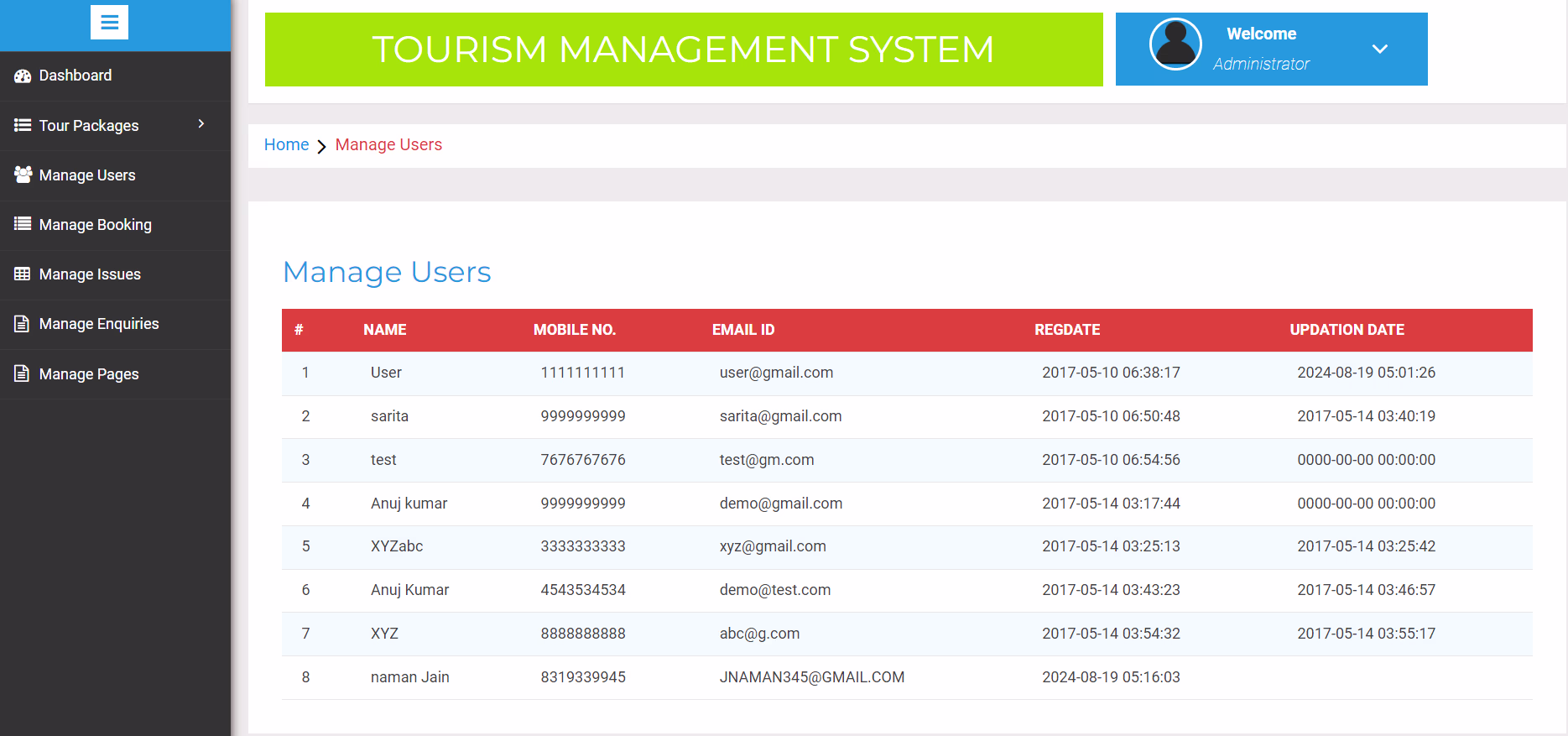 Keywords: source code, final year project code, Tourism Management System Git, documentation, installation guide, php project, college project demo.